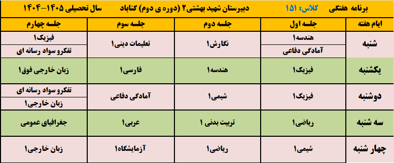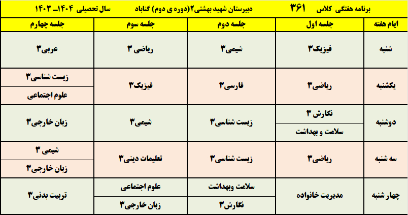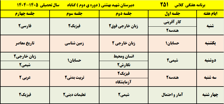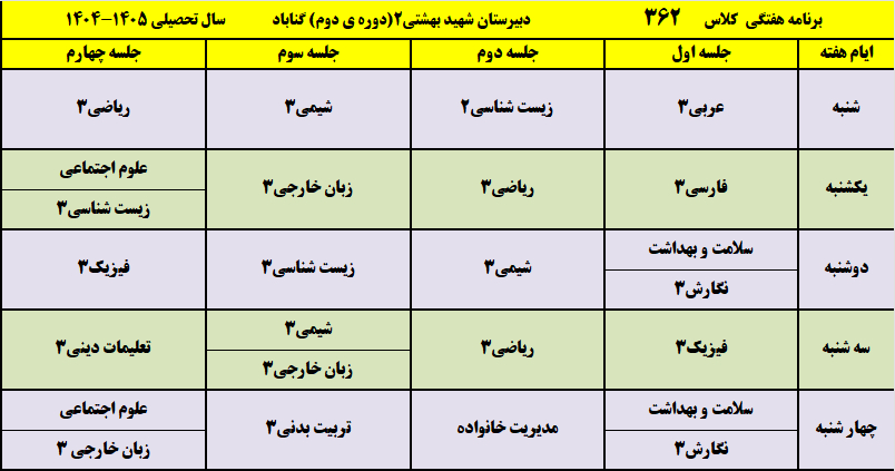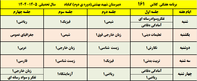 نتایج کنکور 404 اعضای انجمن اویا و مربیان در سال تحصیلی 404-403 نتایج کنکور404 تغییر برنامه درسی کانال شاد دبیـرستان برنامه درسی سرویس دانش آموزی کسب مدال ارزشمند برنز المپیاد فیزیک کشوری توسط دانشآموز نخبه و پرتلاش، جناب آقای حمیدرضا شاهقاسمی ثبت نام سرویس دانش آموزی برگزاری جلسه هم اندیشی با اولیای پایه دهم و انتخابات انجمن برگزاری دوره توجیهی-آموزشی ویژه دانش آموزان جدیدالورود پایه دهم برنامه کلاس های توجیهی ویژه دانش آموزان جدیدالورود (شهریور1404) لباس فرم دانش آموزی برنامه زمانبندی ثبت نام چهارشنبه ۴ شهریور ماه گزارش ثبت نام دانش پژوهان پایه دهم(ورودی با آزمون) 2 شهریور ماه